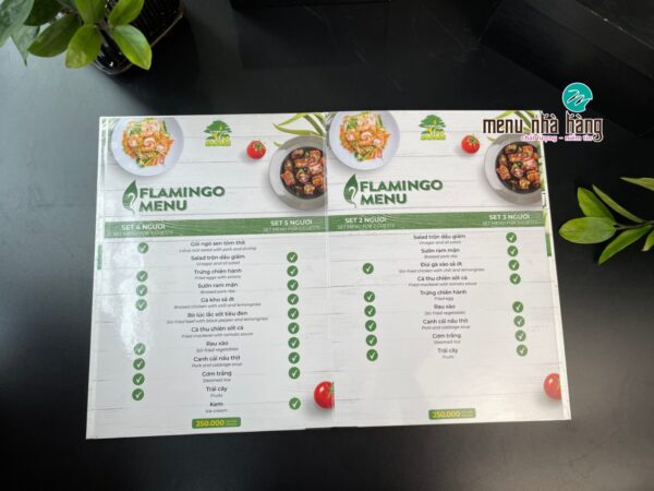 - Menu kraft cán mờ: gọn nhẹ, dễ thay nội dung, chi phí thấp. Rất thích hợp cho quán nhỏ, hoặc hay thay đổi menu theo mùa.