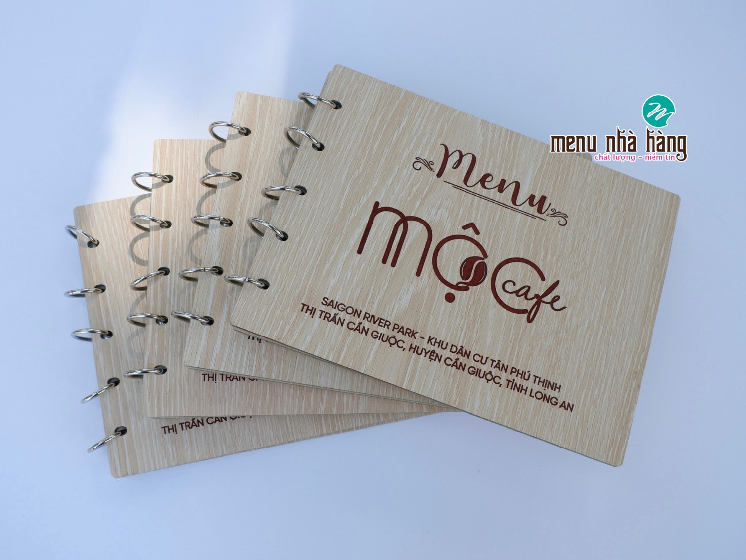 Nếu bạn đang theo đuổi phong cách mộc mạc, vintage, kiểu như quán có tường gạch thô, bàn gỗ cũ, ánh sáng vàng nhẹ… thì menu bìa gỗ rất hợp. Cảm giác cầm vào chắc tay, nhìn đã thấy chất, lại bền theo thời gian.