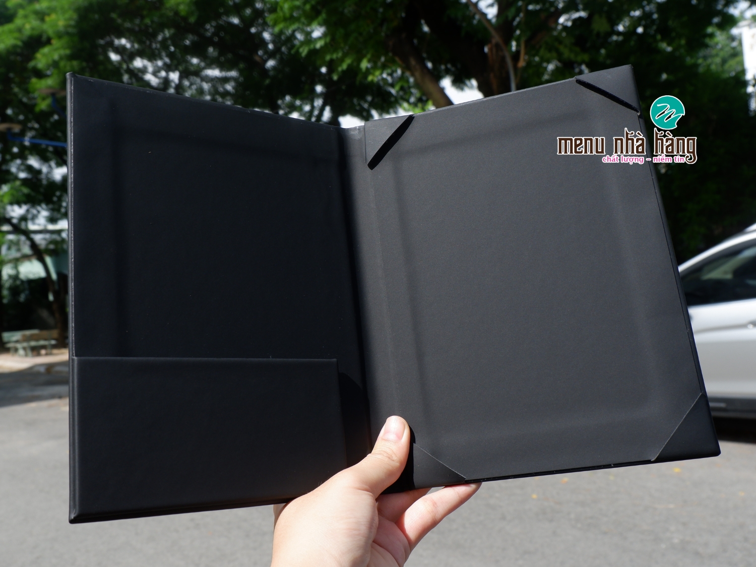 Ngược lại, nếu bạn mở một quán sang trọng, yên tĩnh, tone màu nâu đậm, nội thất đơn giản nhưng lịch sự – thì menu bìa da ép kim là lựa chọn nên cân nhắc. Da mềm, cứng cáp, cầm lên là có cảm giác chuyên nghiệp ngay.