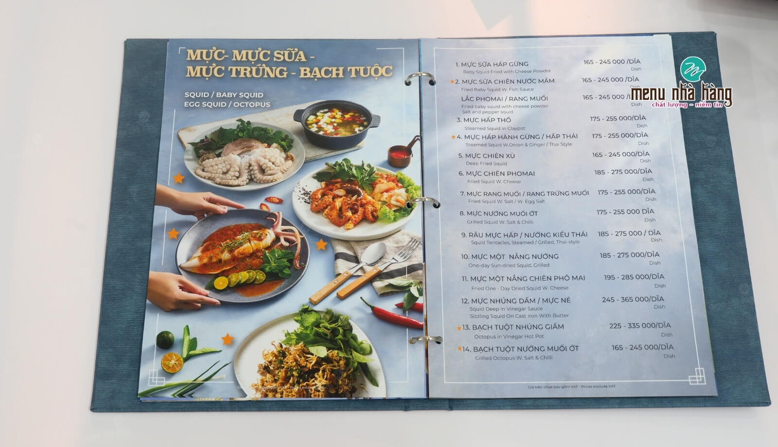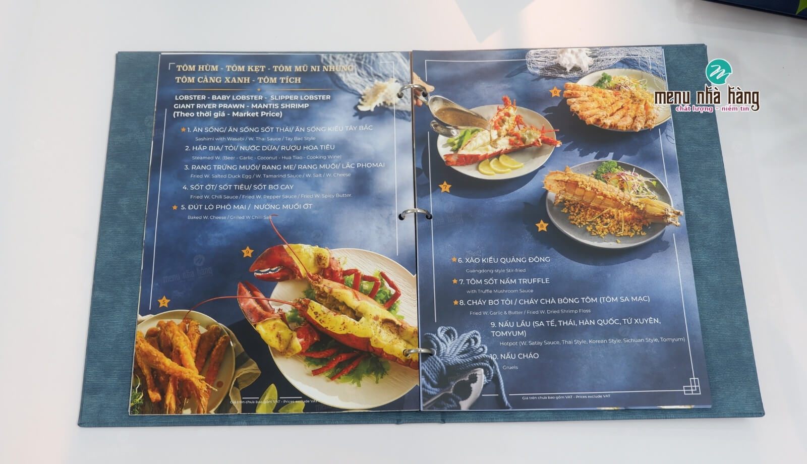 Nếu bạn đang tìm kiếm một mẫu menu nhà hàng hải sản vừa đẹp, vừa bền, vừa thể hiện được giá trị thương hiệu thì đây là lựa chọn rất đáng cân nhắc.